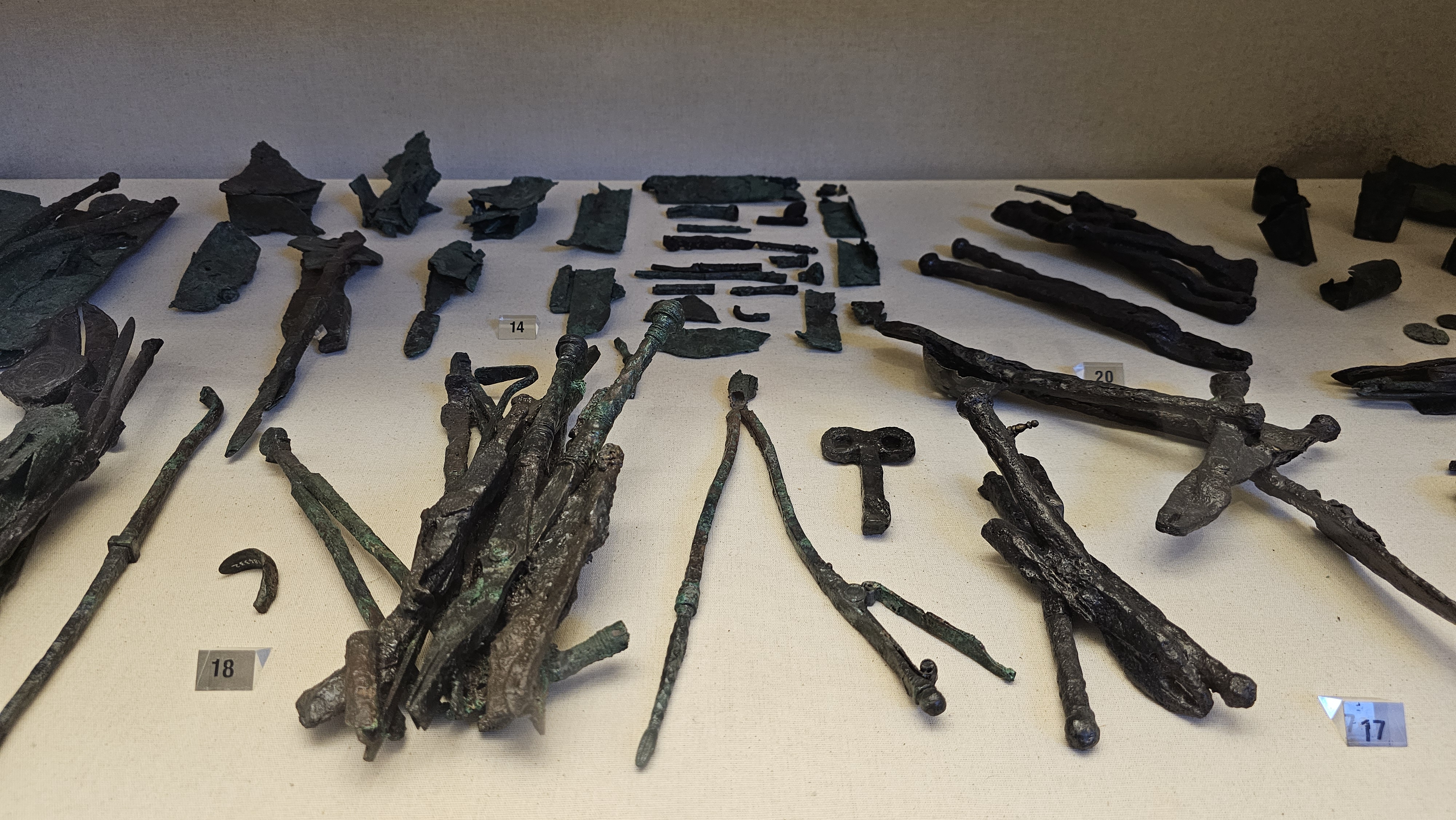 150 surgical instruments which were uncovered in excavations of the surgeons house are exhibited.