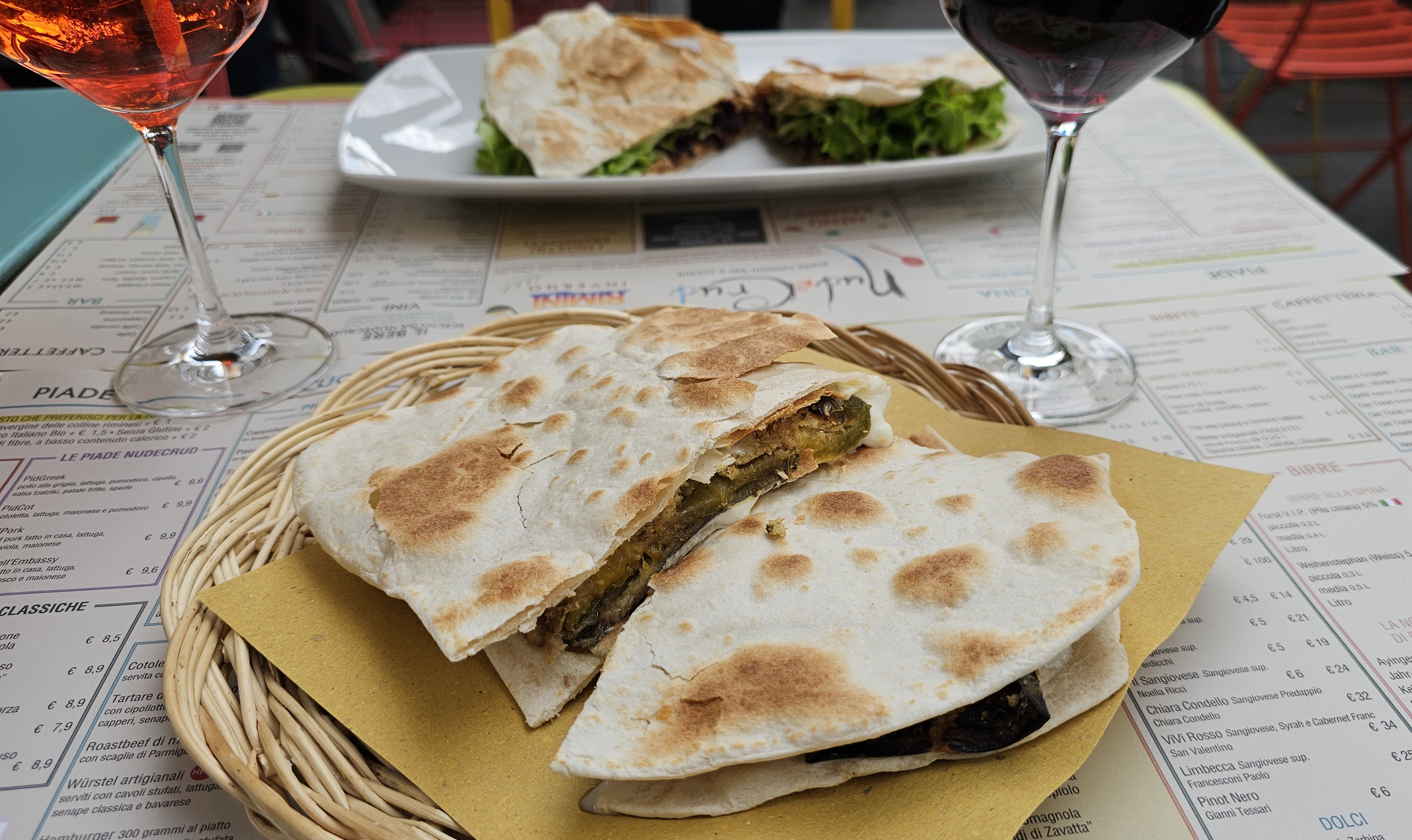 A piadina is a traditional Italian flatbread from the Emilia-Romagna region. This popular snack is served with various options for fillings and on this lunch occasion in the San Giuliano neighbourhood of Rimini I had roasted vegetables and cheese in mine.