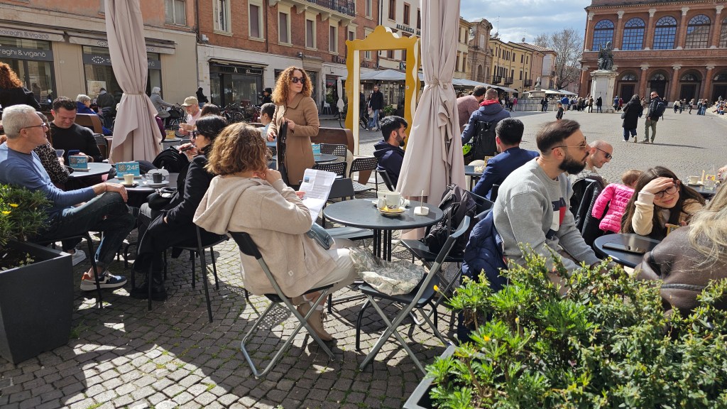 On this day we were lucky to have sun and 18 degrees so we decided to take a break in Piazza Cavour. Above is Bridget checking out the next part of our walking tour over a coffee.