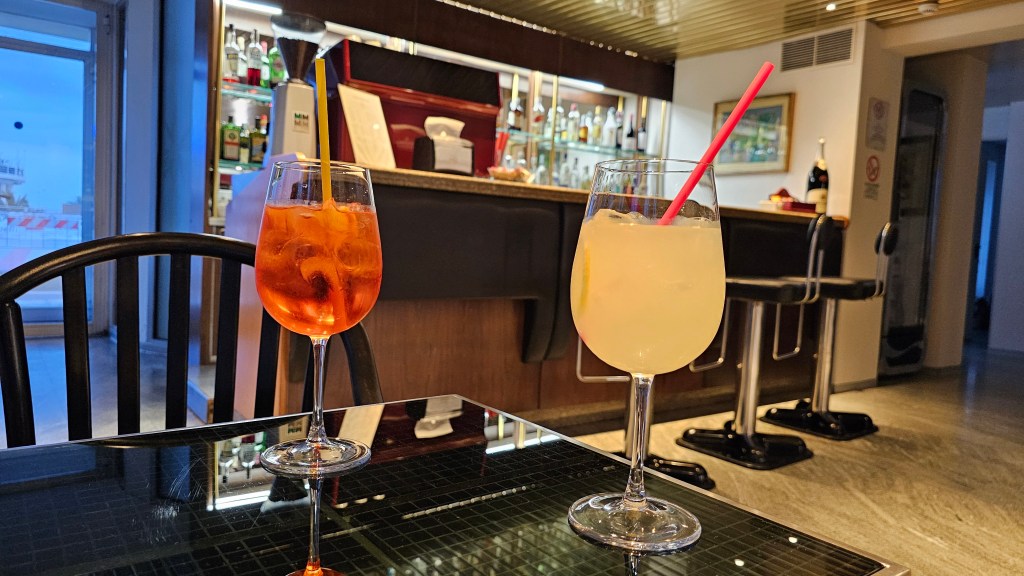 Aperol Spritz is a popular and refreshing drink from Italy. My preference was a slight twist with lemoncello replacing the aperol to go with the prosecco and soda. We tried these in our hotel bar and they were fabulous! Generous glasses for just €6 (£5) each.