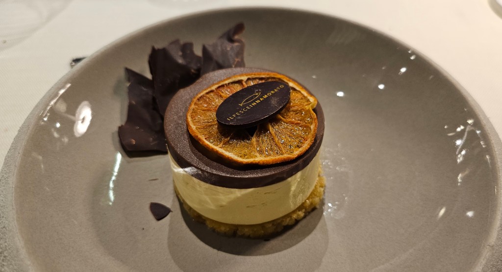 This was the only dessert I had in Rimini and it was tasty so worthy of a mention. Zabaione Surprise in Il Pesceinnamorato consisted of: zabaione mousse, mandarin compote, grand marnier, dark chocolate and almond biscuit 😋