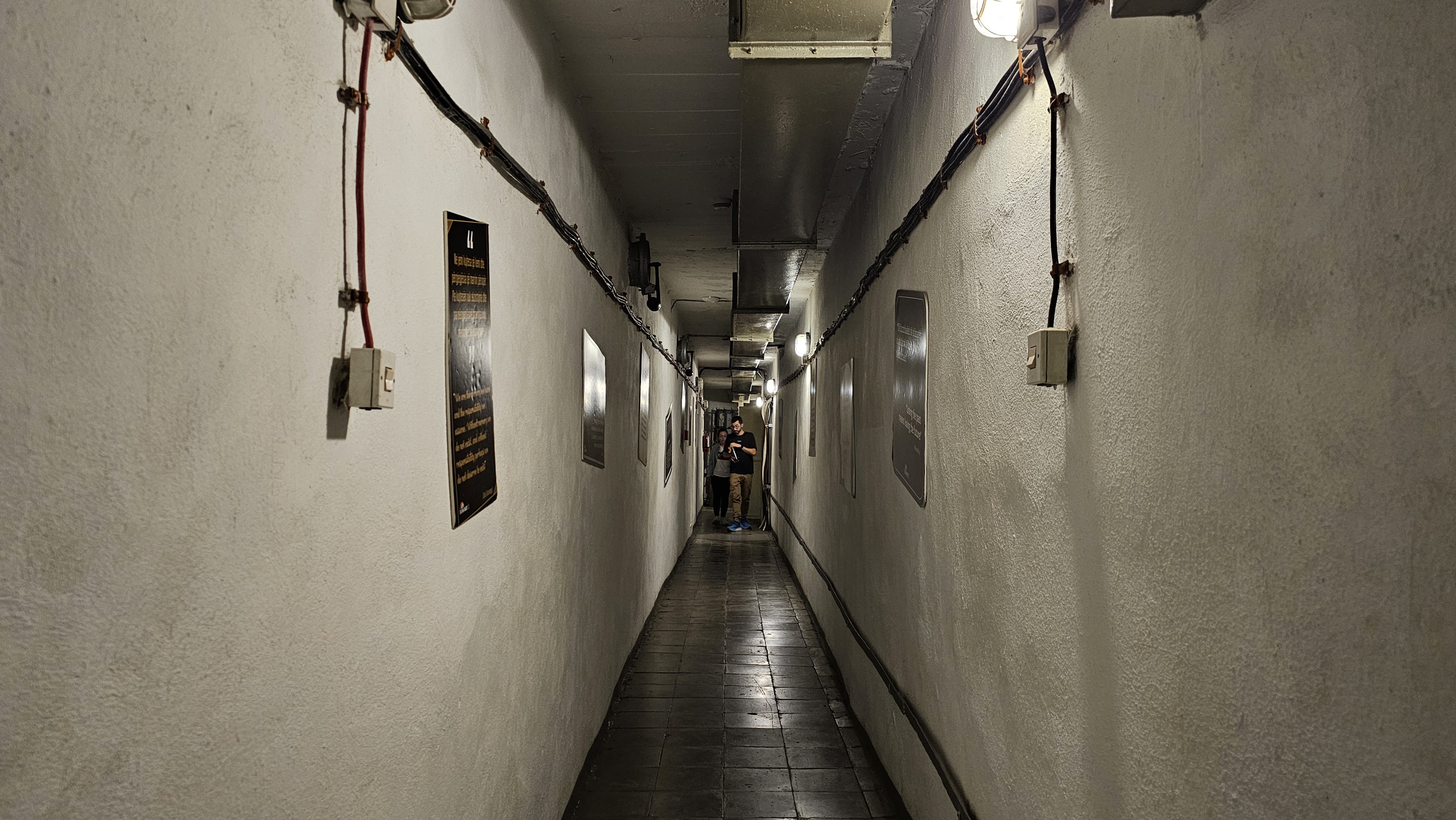 There is also an interrogation room, a room dedicated to victims, a room showing secret surveillance techniques and a room with various related quotes, such as: “Evil settles roots when a man begins to think he is better than others” (by Mother Teresa).