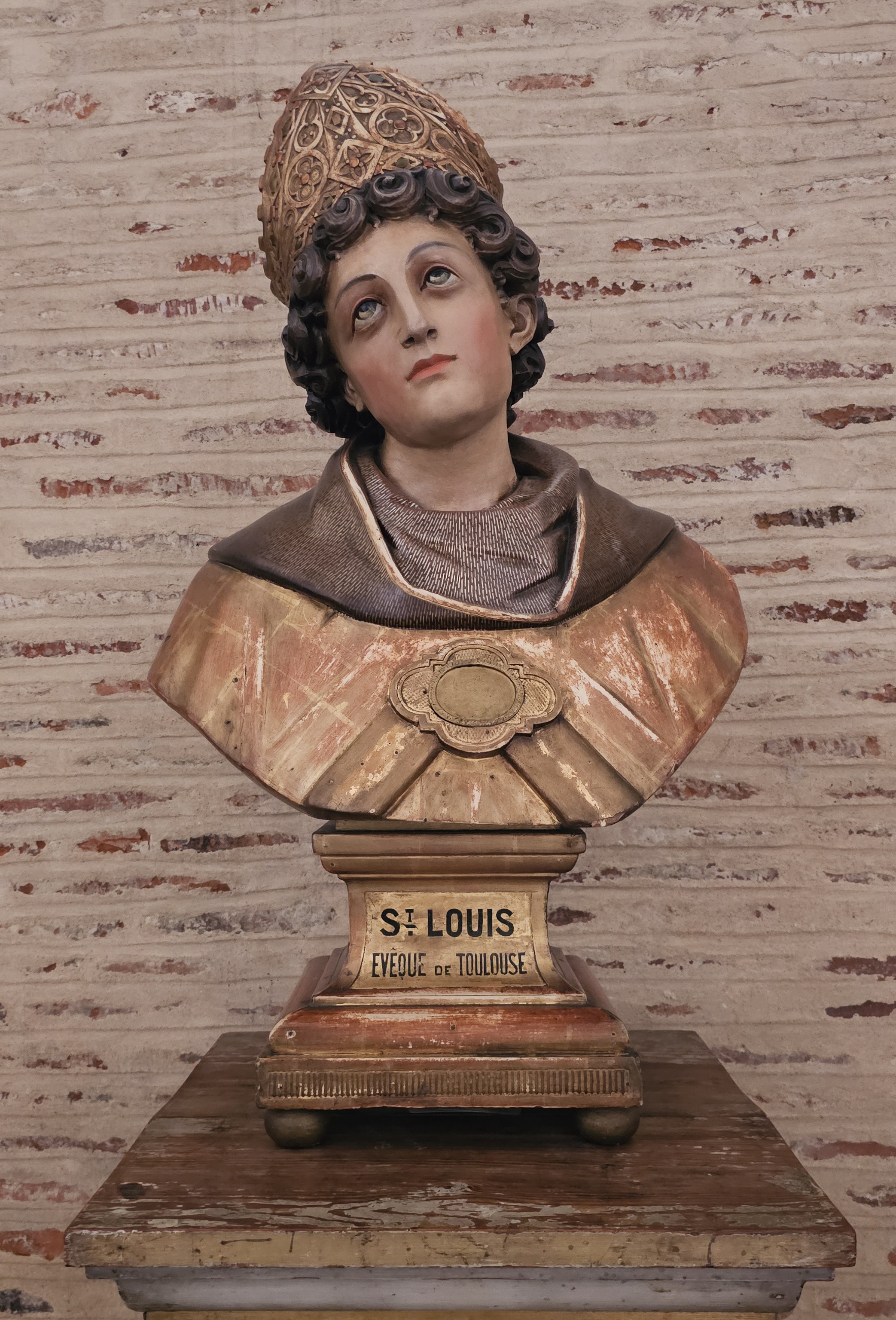 Figure heads of saints can be found inside the basilica, for example, that of Saint Louis of Toulouse who was born on 9th February 1274 and died at age just 23. St Louis spent much of his early childhood in Italy but when his father, King Charles II of Naples was captured, he (and his two brothers) were handed over as hostages and taken to Catalonia where they were looked after and educated for 7 years by Franciscan friars. He later was granted the position of Bishop of Toulouse but he abandoned this in favour of serving the poor and feeding the hungry. It seems he died of a fever, thought to be typhoid.