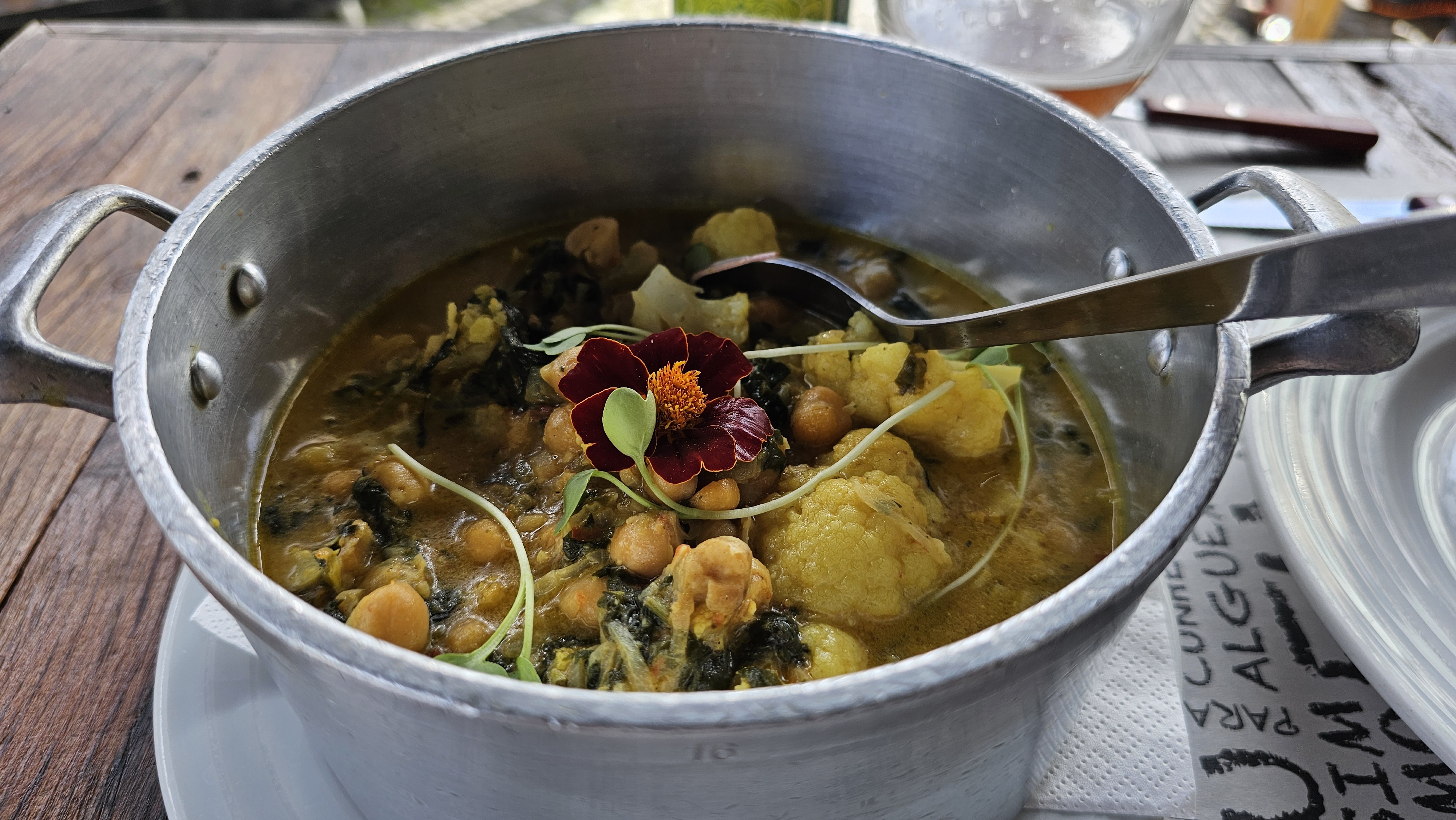 We were close to Madalena by now so we drove through pretty hydrangea lined country roads along the rest of route EN3 and into the town for lunch. Chris and I shared the most tasty and best vegetable and coconut curry ever in ‘Caffe 5 Cinq’ a busy but fabulous little restaurant.