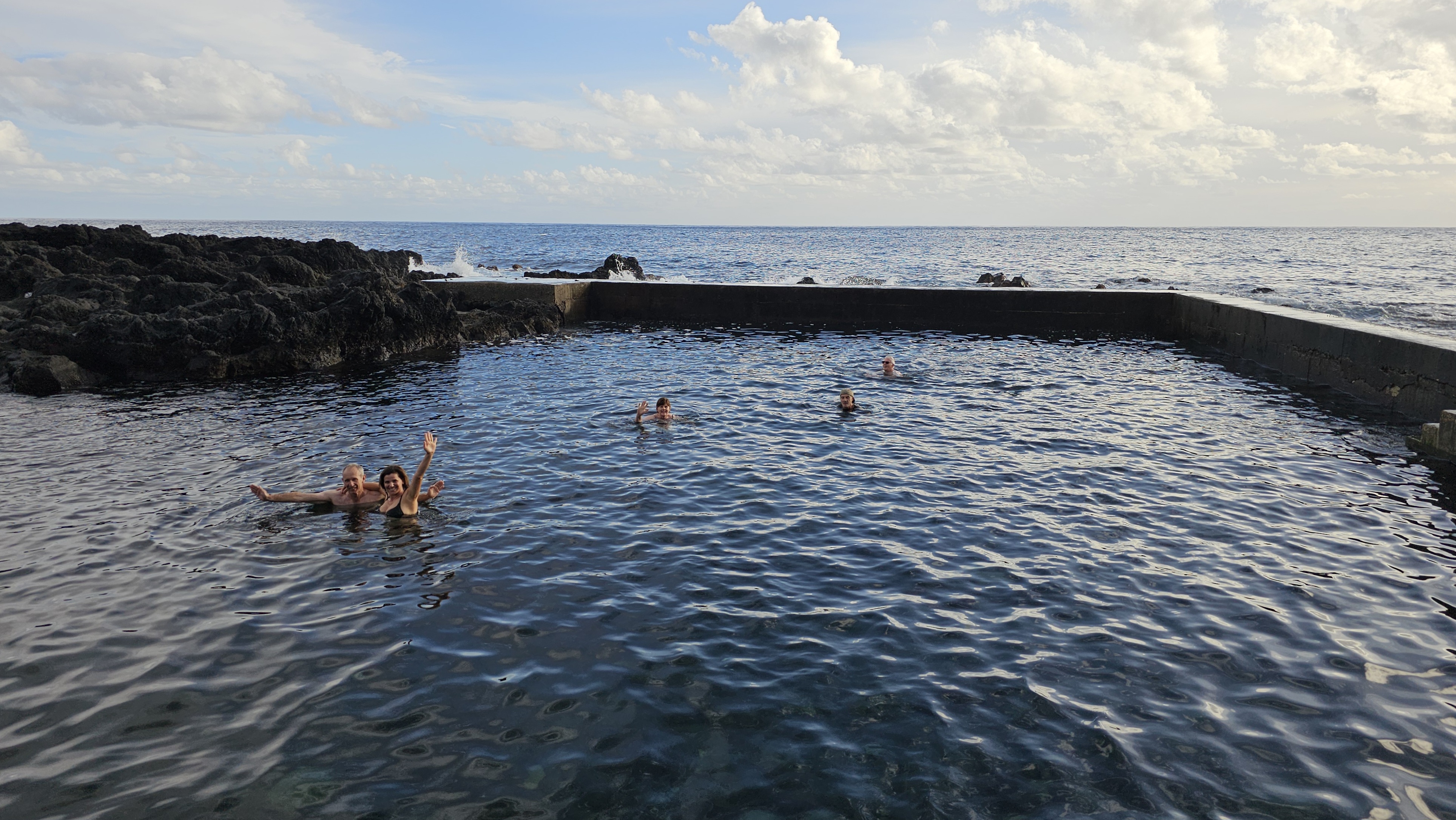 While in Madalena we found a big supermarket where we stocked up on provisions for breakfast and lunch for the following day, to ensure we had plenty of food ready for our Pico summit climb. Next we drove for 25 minutes or so to Sao Mateus village. After a drink in a small seafront cafe it was time for some sea swimming!
