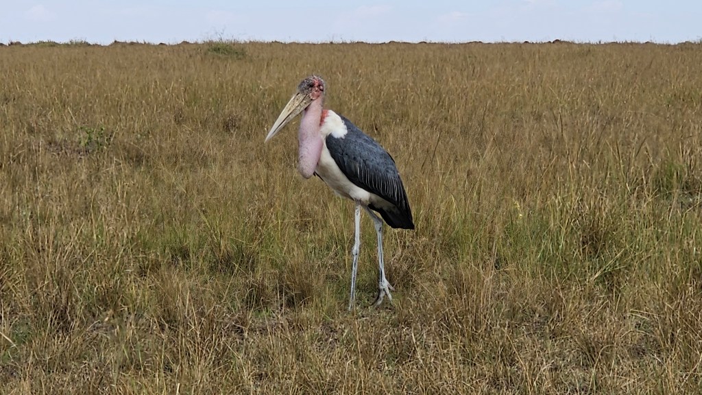 As we munched (somewhat quickly) a Maribou Stork arrived and was hovering around behind where we were sitting. These things are about 4 feet tall and are another of the ‘ugly’ 5.
