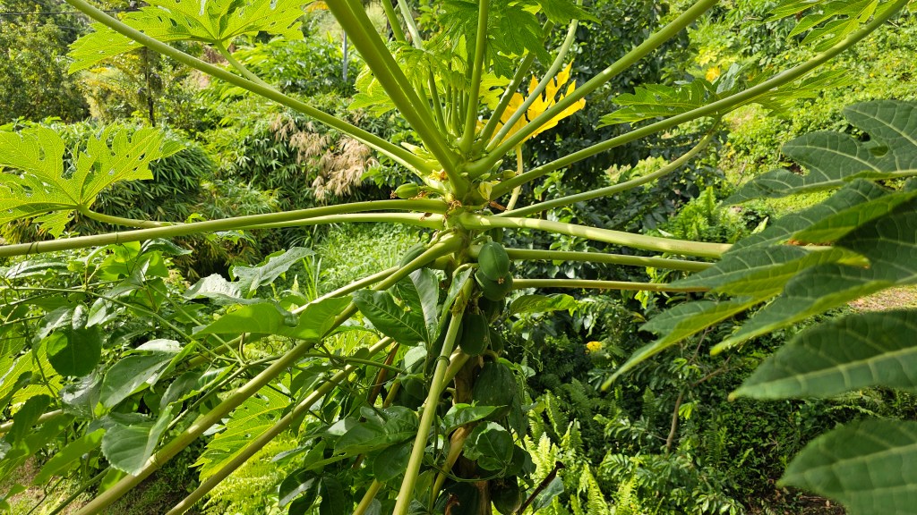 Our decking overlooked the top of a papaya tree and from here we also saw a dark green humming bird darting around.