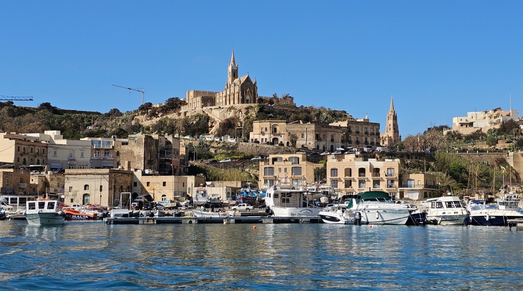 As a purely functional ferry all seats were inside so we didn’t get a glimpse of Gozo until we arrived 45 minutes later. The crossing was smooth and the cabin is air conditioned which would be appreciated in the summer.