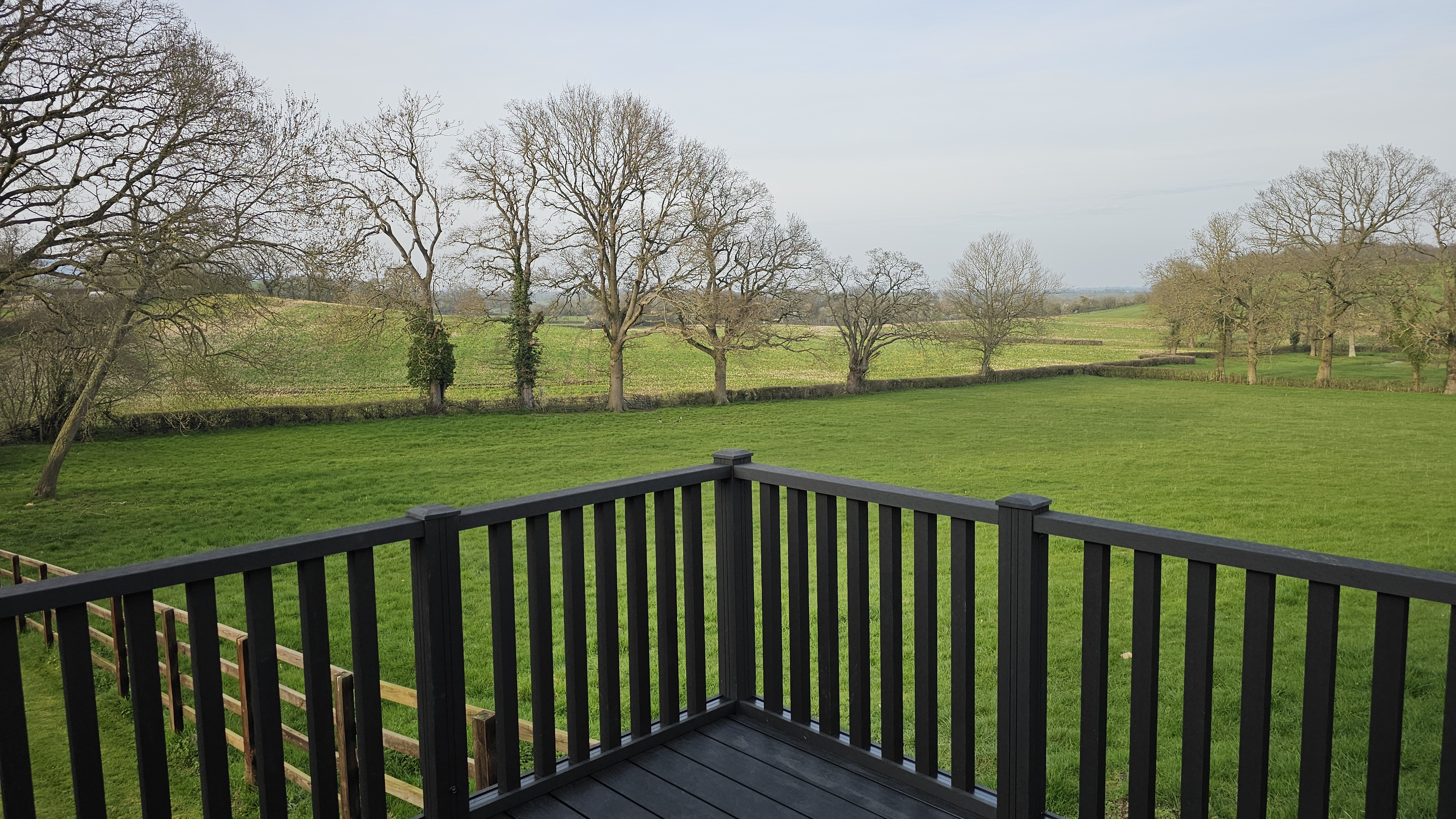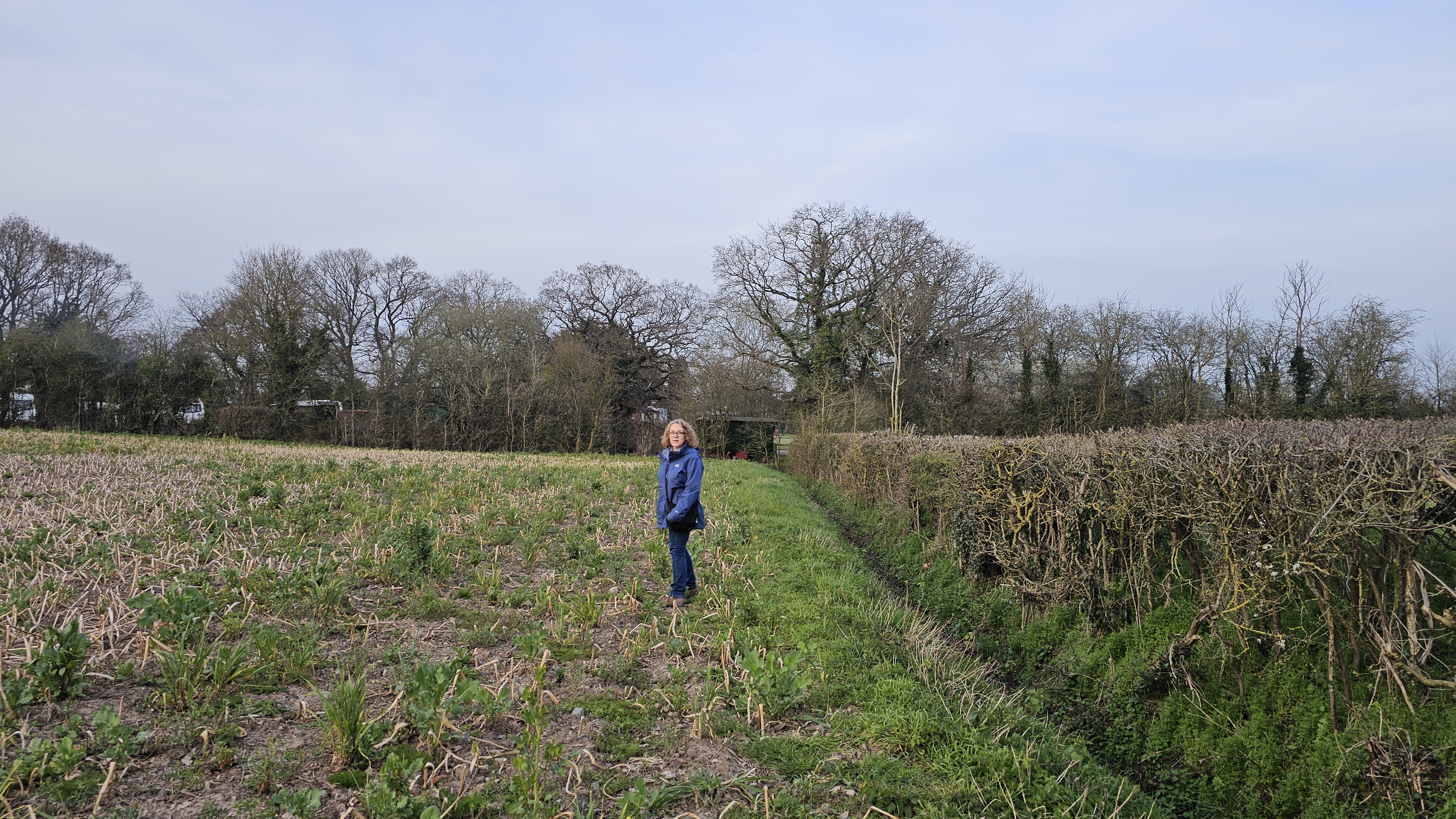 Through an ancient gate we had a muddy field to traipse across until we came to a fence and a small stream. We to climb through the fence and into a caravan site where we popped out and surprised a guest who was sitting outside her shepherds hut!