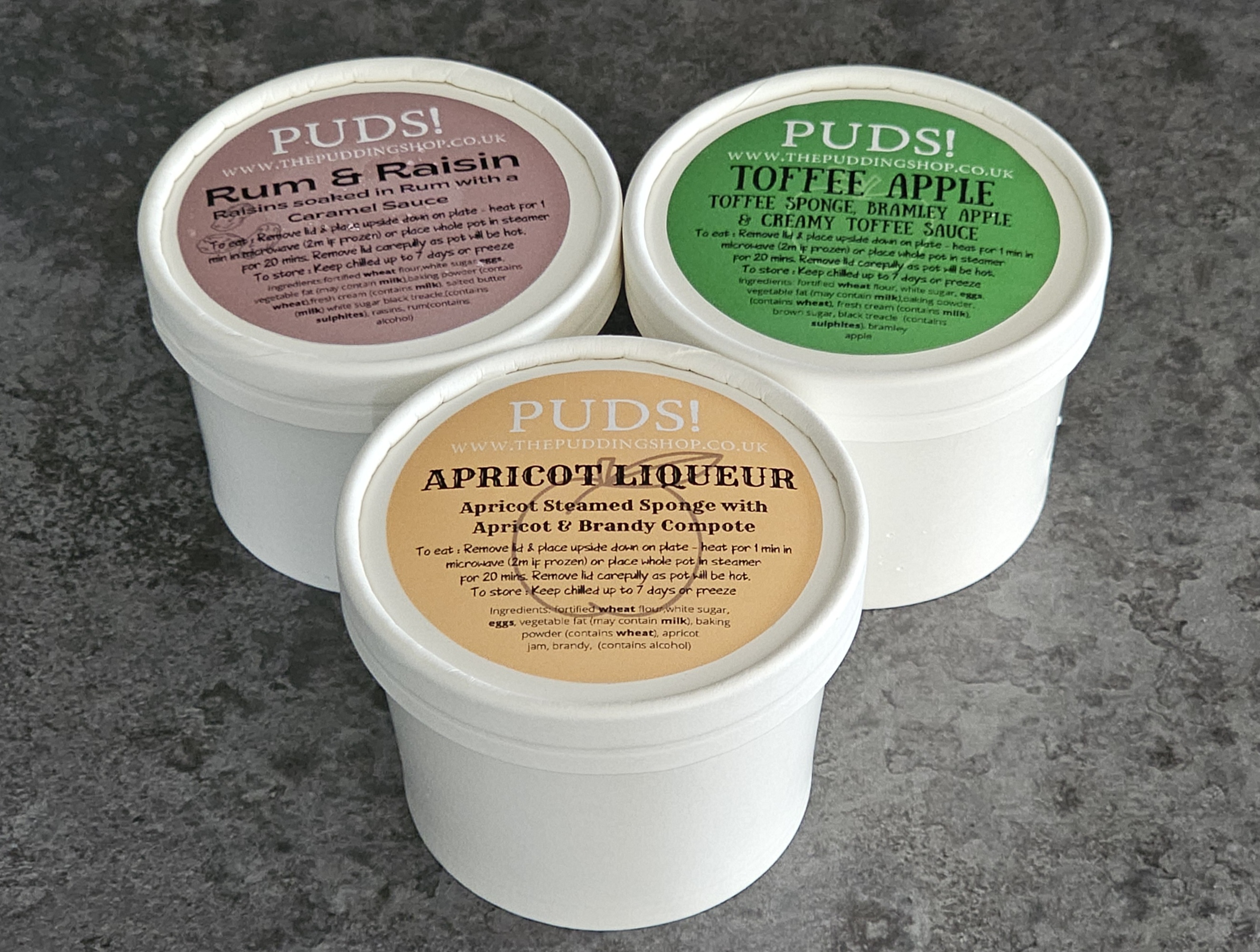 Of about 20 different flavours, I chose Rum & Raisin, Apricot Liqueur and Toffee Apple. As they have already been freshly cooked on site, the puddings will keep in the fridge for up to a week and they can also be frozen. They can then be steamed for 20 minutes or so, or popped into the microwave. They are available for online purchase at the Pudding Shop