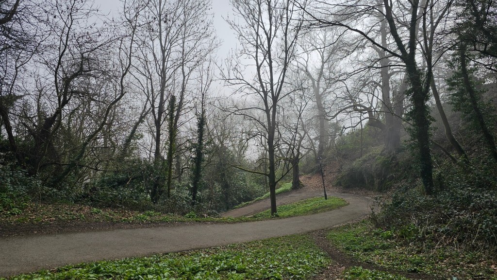 Today (Saturday) was the main trekking day. We parked in Priory Road South Car Park in Great Malvern and set off in atmospheric misty conditions until we reached Rose Bank Gardens and the ’99 Steps’. At the foot of the 99 Steps is a ‘C.S. Lewis Plaque’ which commemorates the time the famous author spent studying in Malvern College.