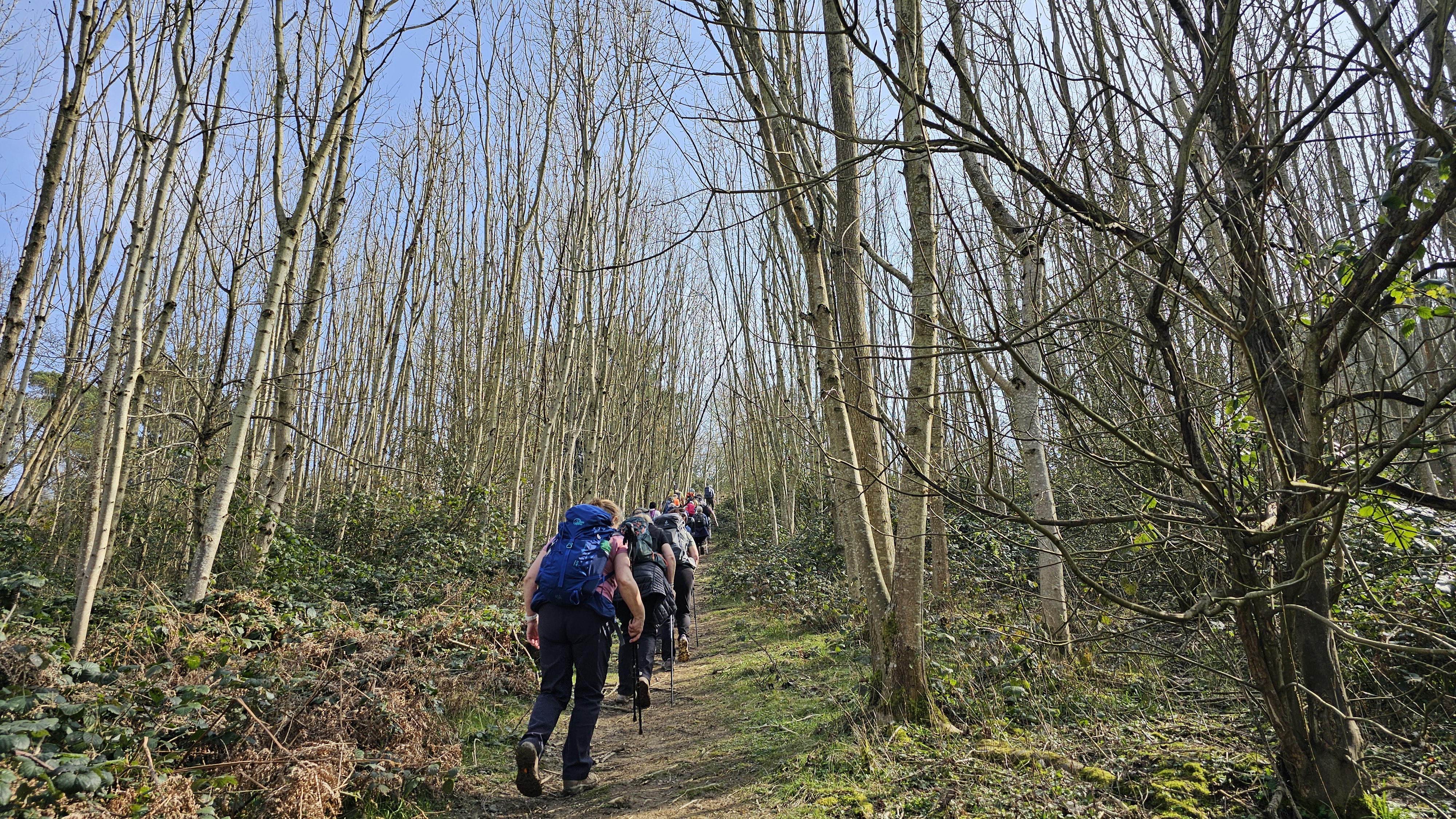 A steep climb up a narrow track took us up to the first main hill of the day! We were in tee shirts in the warm weather although the views were somewhat hazy.