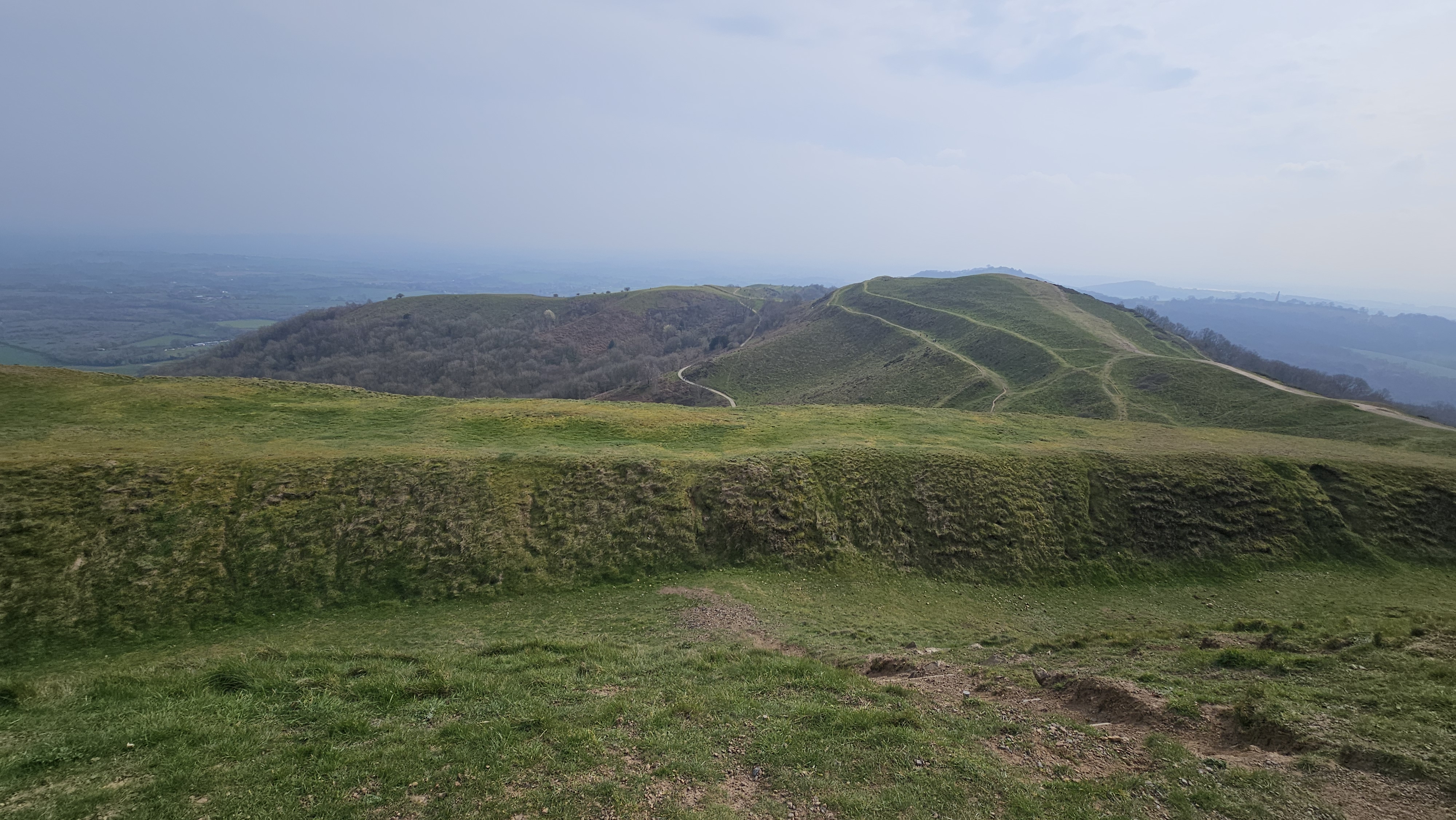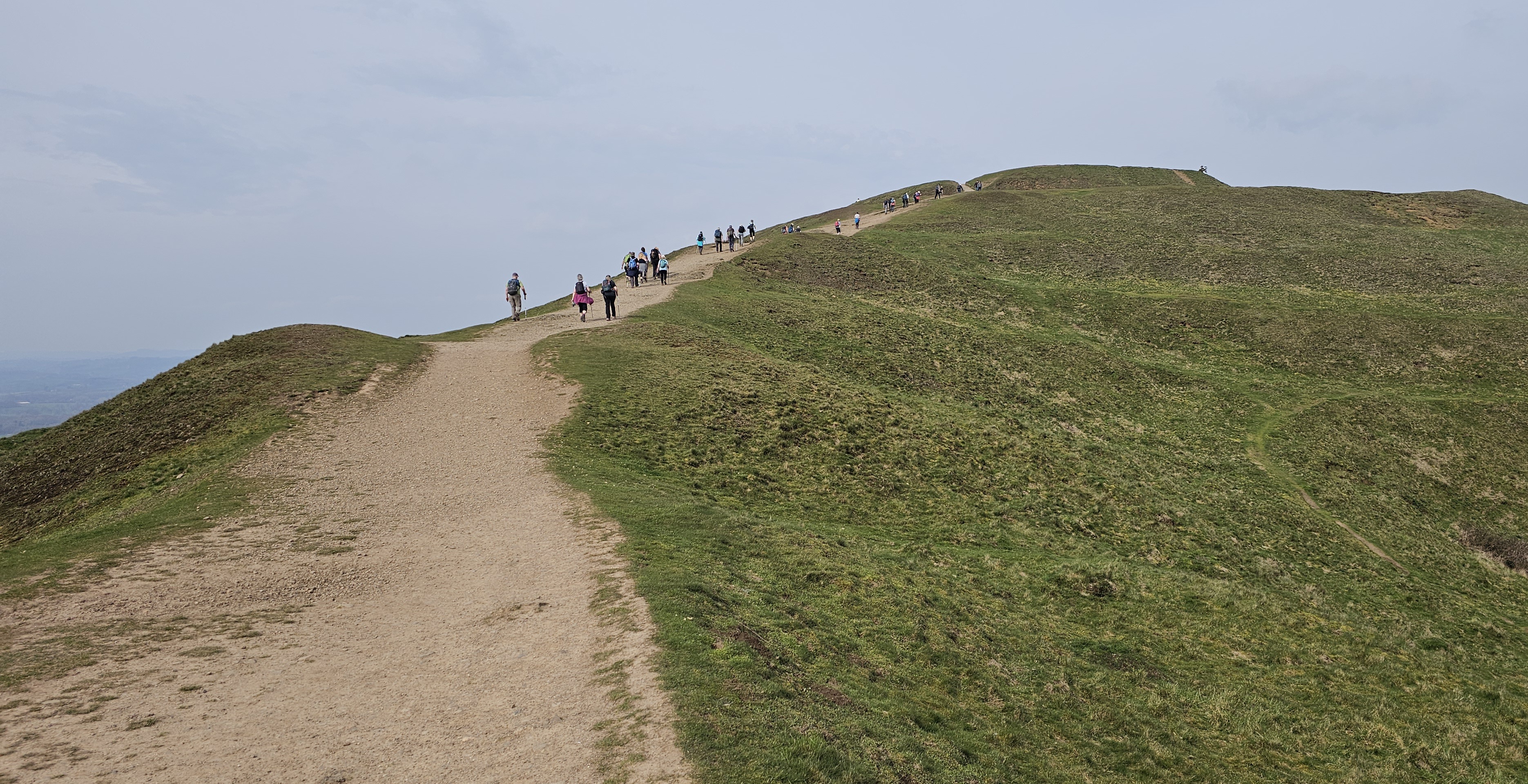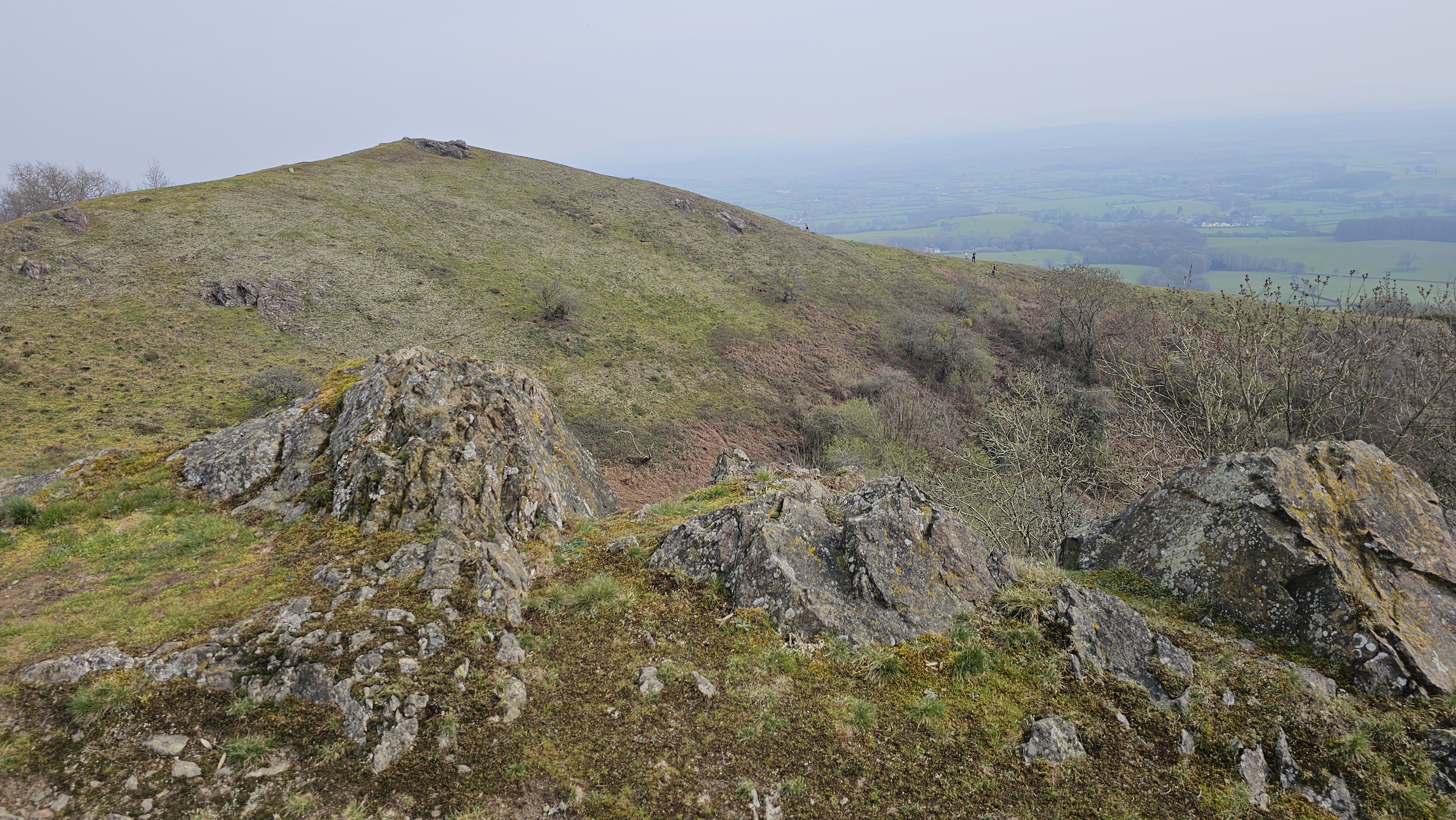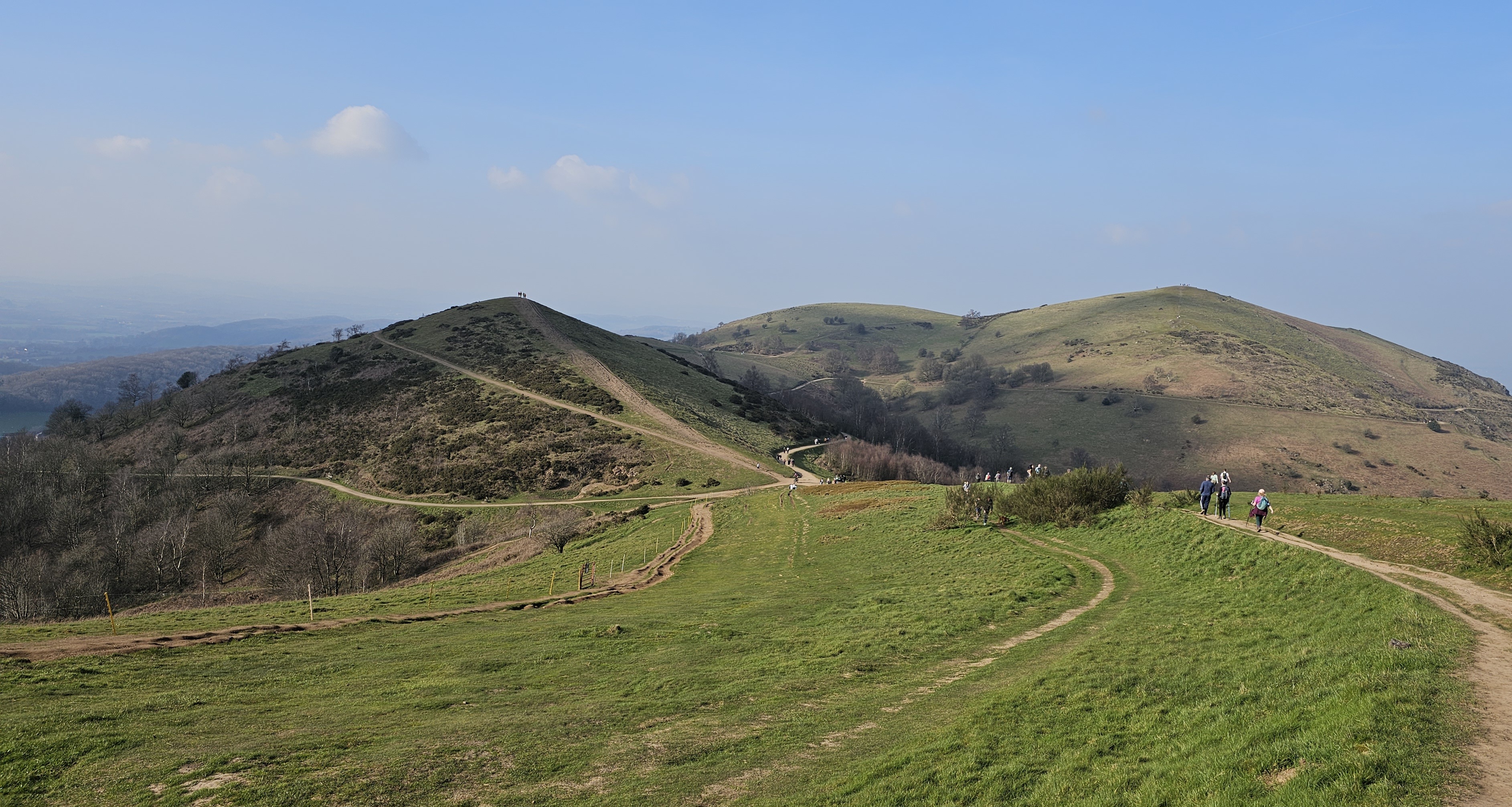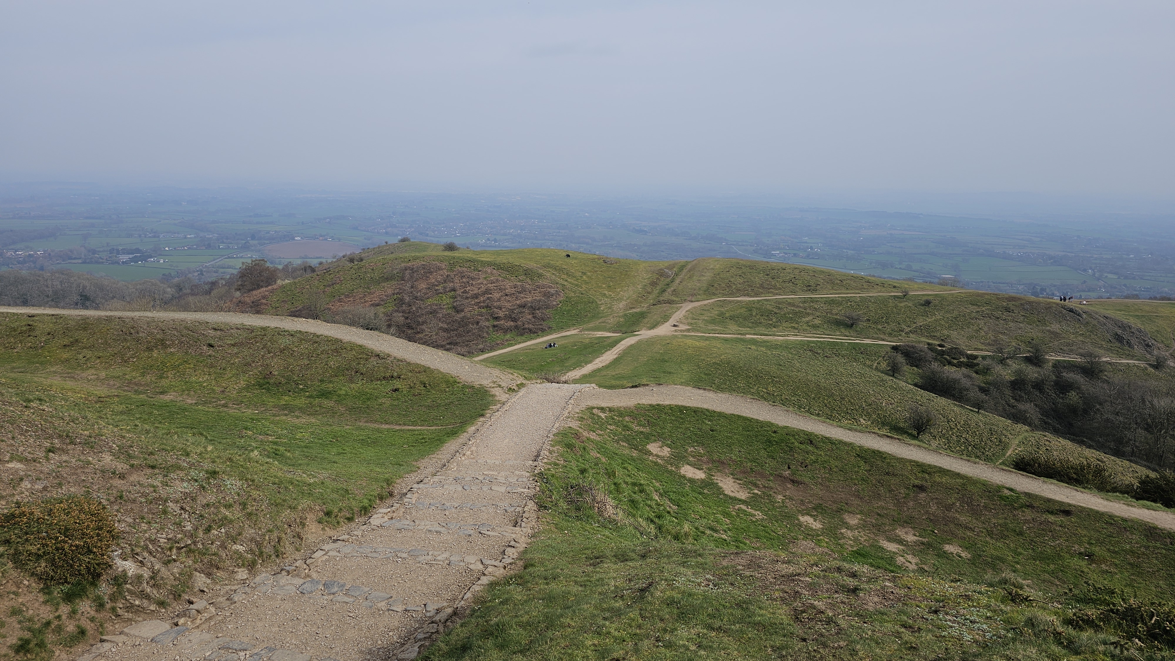 From the top of each of the peaks we could see views towards the Black Mountains of Wales to the west and across the West Midlands of England to the east.